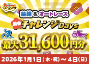 新春【全レベル制覇でもれなく最大31,600円分】競輪×オートレースチャレンジDays