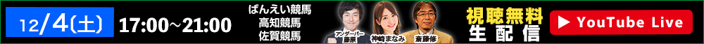 12月4日(土)帯広競馬場、高知競馬場、佐賀競馬場