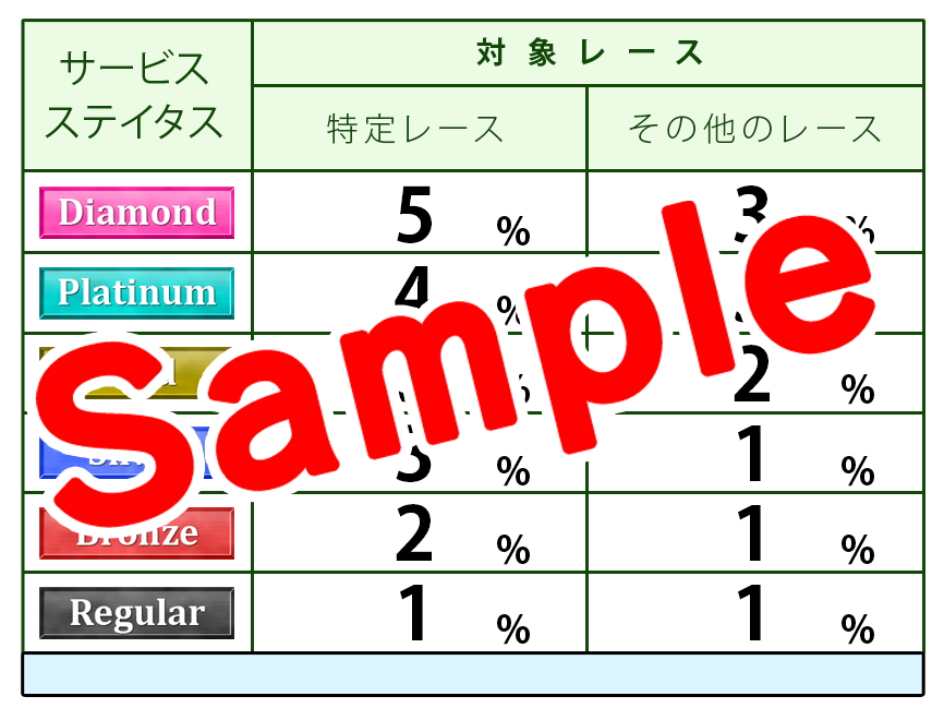 ※特定レースとはオッズパークが指定する対象場で行われるレースの中で特に付与されるポイントが高いレースを指します。