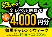 【全レベル制覇でもれなく4,000円分】11月14日(金)~20日(木)の競馬チャレンジウィーク