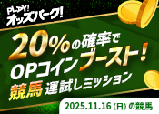 【20%の確率でOPコインブースト!】11月17日(月)の競馬 運試しミッション