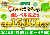 【全レベル達成で最大15,300円分】1月1日(木・祝)-4日(日)の競馬 新春チャレンジDays