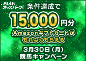 【3月30日競馬で15,000円分】条件達成でもれなくもらえるキャンペーン
