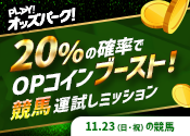 【20%の確率でOPコインブースト!】11月23日(日・祝)の競馬 運試しミッション