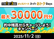 【最大30,000円分】11月2日(日)は的中残高からチャージしよう!キャンペーン