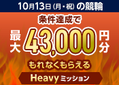 選べるミッション!【条件達成でもれなく43,000円分】10月13日(月・祝)の競輪 払戻金獲得 Heavyミッション