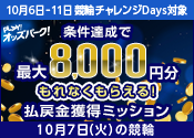 【条件達成でもれなく最大8,000円分】10月7日(火)の競輪 払戻金獲得ミッション
