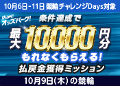 【条件達成でもれなく最大10,000円分】10月9日(木)の競輪 払戻金獲得ミッション