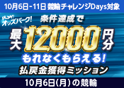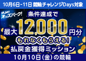 【条件達成でもれなく最大12,000円分】10月10日(金)の競輪 払戻金獲得ミッション