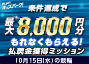【条件達成でもれなく最大8,000円分】10月15日(水)の競輪 払戻金獲得ミッション