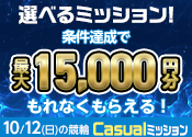 選べるミッション!【条件達成でもれなく最大15,000円分】10月12日(日)の競輪 払戻金獲得 Casualミッション