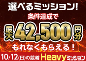 選べるミッション!【条件達成でもれなく最大42,500円分】10月12日(日)の競輪 払戻金獲得 Heavyミッション