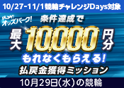 【条件達成でもれなく最大10,000円分】10月29日(水)の競輪 払戻金獲得ミッション
