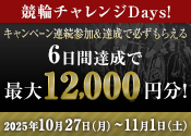 【条件達成でもれなく最大12,000円分】競輪チャレンジDays!連続達成ボーナスキャンペーン!