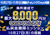 【条件達成でもれなく最大8,000円分】10月27日(月)の競輪 払戻金獲得ミッション
