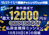 【条件達成でもれなく最大12,000円分】10月30日(木)の競輪 払戻金獲得ミッション