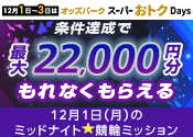 【条件達成でもれなく最大22,000円分】12月1日(月)のミッドナイト 競輪ミッション