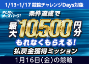 【条件達成でもれなく最大10,500円分】1月16日(金)の競輪 払戻金獲得ミッション