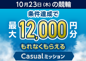 選べるミッション!【条件達成でもれなく最大12,000円分】10月11日(土)の競輪 払戻金獲得 Casualミッション