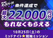 【条件達成でもれなく最大22,000円分】10月25日(土)のミッドナイト 競輪ミッション