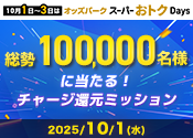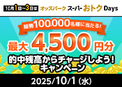 【最大4,500円分】10月1日(水)は的中残高からのチャージもおトク!抽選で総勢100,000名様に還元キャンペーン