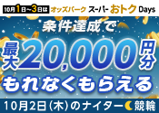 【条件達成でもれなく最大20,000円分】10月1日(水)のデイ 競輪ミッション