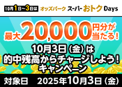 【最大20,000円分】10月3日(金)は的中残高からチャージしよう!キャンペーン