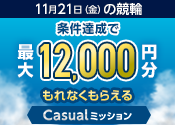 選べるミッション!【条件達成でもれなく最大12,000円分】11月21日(金)の競輪 払戻金獲得 Casualミッション