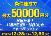 条件達成で最大50,000円分が当たる!12月28日(日)-30日(火)のチャージミッション