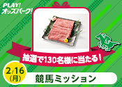 【黒毛和牛500g】抽選で130名様に当たる!2月16日(月)の競馬ミッション 終了