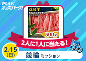 【黒毛和牛500g】2人に1人に当たる!2月13日(金)競輪ミッション 終了