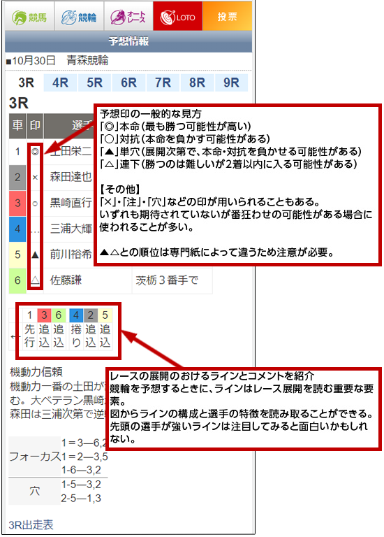 はじめてオッズパークで遊ぶ方は、プロの予想も参考にしましょう。プロの予想はオッズパークサイトや各専門紙に記載され、〇や▲の印で表記されています。