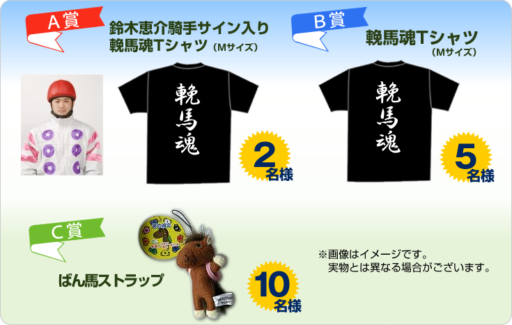 対象期間中、オッズパークでばんえい帯広競馬場の勝馬投票券を3,000円以上ご購入いただき、キャンペーンに応募いただいた方の中から抽選で以下のいずれかの賞品をプレゼント。